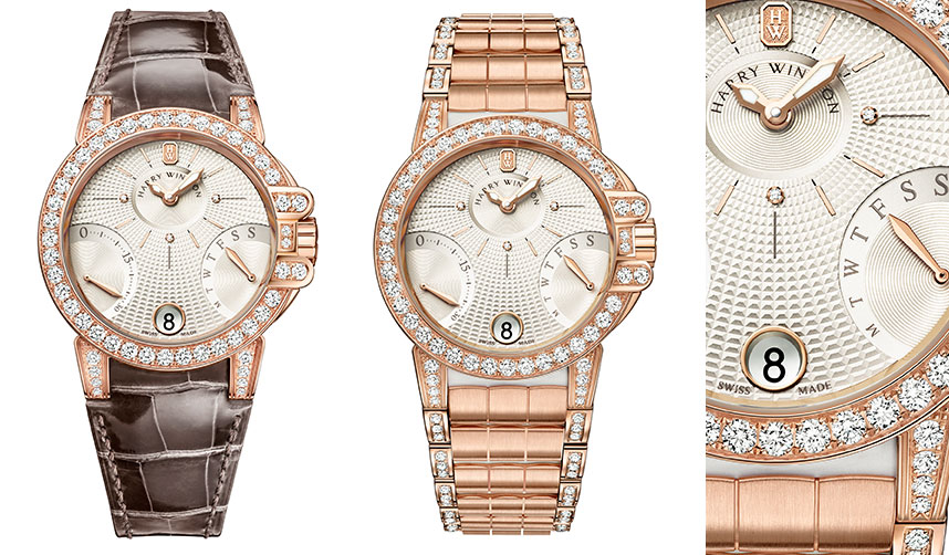 Siguiendo el estilo inimitable de Harry Winston, el Ocean Biretrograde combina hábilmente un diseño elegante con la mecánica de la máxima calidad, especialmente para las damas. Cerca de una década después del lanzamiento de su colección Ocean y siete años después del lanzamiento del primer Ocean Biretrograde, Harry Winston presenta unas fascinantes esferas que completan la colección. Estas nuevas realizaciones reinterpretan los códigos estéticos de la alta relojería Ocean Biretrograde y proporcionan un encanto único y seductor al reloj, gracias a los nuevos colores de la esfera y a su centelleante diseño tridimensional.