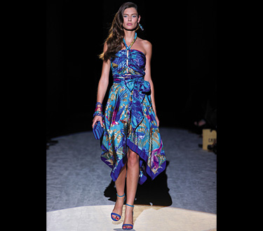 La intensidad de los diferentes azules y berenjenas, toques energéticos de rojos, naranjas, fucsias y verdes, aunados a la suavidad de los tonos pastel, producen fondos de luminosa energía para los estampados pictóricos y los accesorios.