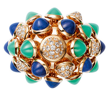 Para más sofisticación está el anillo "Voluptueuse" hecho con perlas y diamantes, un anillo en forma de cúpula coronado por un diamante o una perla , una pieza de 18 quilates de oro blanco completamente pavimentado con diamantes y engastado con un diamante central talla brillante. El "Impertinente" es la joya con una energía única, una espiral de diamantes y oro festoneado se empareja con ónix y lapislázuli. El anillo de 18 quilates de oro blanco está engastado con diamantes, ónix y lapislázuli. El anillo "Delicado" es un sutil juego de un solo anillo, delicadamente entrelazado que crea la ilusión de una curva sin fin, cuenta con 18 quilates de oro blanco completamente pavimentado con diamantes.
